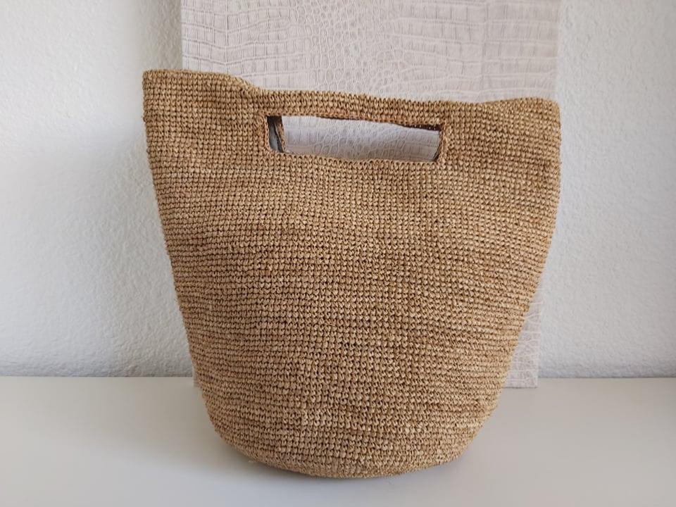 Sac en raphia tressé et crocheté entièrement à la main.